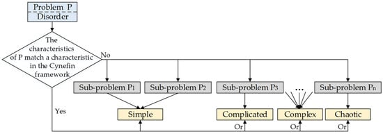 This problem area is the starting point of the problem analysis. If the problem to be solved matches the characteristics of a problem area within the Cynefin framework, it can be directly divided into the corresponding problem area. If the problem exhibits the characteristics of multiple problem areas within the Cynefin framework, the problem is divided into sub-problems based on the problem area characteristics of each area within the Cynefin framework. It is then divided into the corresponding problem area to be solved, as shown in Figure 6.