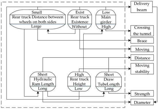 The design idea is evaluated according to Equation (1), as shown in Table 4. From the evaluation, it can be seen that the two solutions have a higher ideality than the existing system. The sum of benefits of solution two is higher than solution one, but the expense and harm are higher than solution one due to that solution one only requires changing the mobile bridge erecting machine, while solution two also requires to change the accompanying beam truck, making the manufacturing cost much higher than solution one. Based on the idea, solution one is chosen as the final innovative solution. This solution retains the function of transporting and erecting beam by the existing machine. It also adds the function of loading beams directly from the beam truck at the construction site. It solves the problem of the low efficiency of the machine when the erection route is too long.