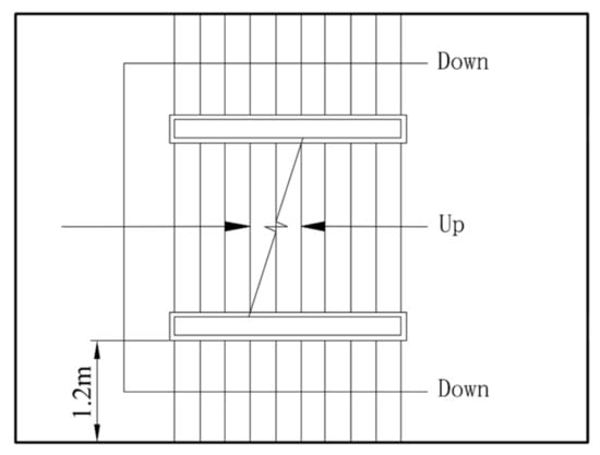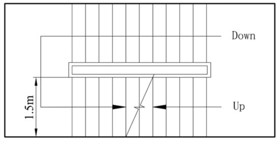 According to the fire safety and evacuation requirements of cruise ships, there are several main vertical zones (MVZ) along the longitudinal length of the cruise ship. The red line in Figure 1 indicates the location of the main fire barriers (MFB), which divide the ship into six MVZs. Passengers are distributed between MVZ 1 and 5. There are several staircases along the longitudinal length of the cruise ship. Stairs 1–5 are the main evacuation staircases that connect multiple decks. Stairs 6 connects Deck 1 to 2, and stairs 7 and 8 connect Deck 9 to 10. Stairs 1, 2, 5 and 6 are double-run staircases, stairs 3 and 4 are double-divided staircases, and stairs 7 and 8 are single-run staircases. The structure and dimensions of these staircases are shown in Figure 2, Figure 3 and Figure 4.