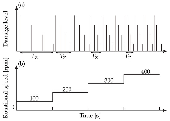 For each rotational speed, a statistically representative set of signals was thus determined for each damage level.