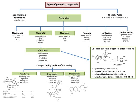 Classification and the best sources of phenolic compounds, as well as the most important changes occurring in processed tea leaves.