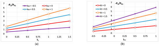 - At normal operations (), rotor R2 works in the motor mode only for , becoming a brake for ; for (i.e., rotor R2 rotates in the same direction as the primary rotor R1), R2 becomes the motor only if (see the line in Figure 3a).