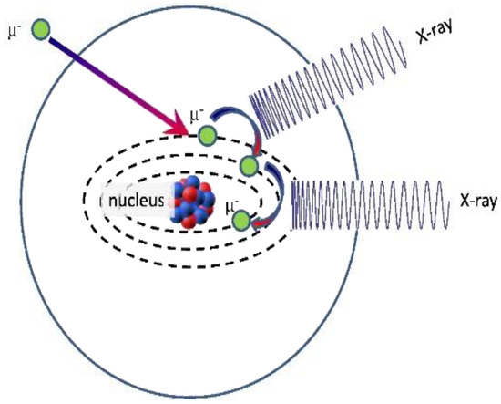 Muons are elementary particles (leptons) identified by the Greek letter “μ” that can be positively or negatively charged. With a mass that is almost 207 times the mass of the electron, a negative muon is considered a “heavy electron”, with an electric charge of −1 and ½ spin. As an unstable particle, the muon has a mean lifetime of 2.2 μs. The negative muon, other than the decay process, can experience capture by an atom, giving rise to the so-called “muonic atom” (Figure 1): the time scale of this process is in the order of 10−13 s.