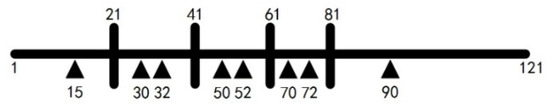 By changing the last measuring point to #29, #33, #49, #53, #69, #73 and #91 points, respectively, similar results can be obtained according to the other rows of the matrices in Equations (23)–(30).