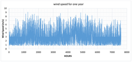 where A represents the swept surface area of the turbine in m3, stands for the air density in kg/m3, V denotes the wind speed in m/s and represents the power coefficient of the wind generator.