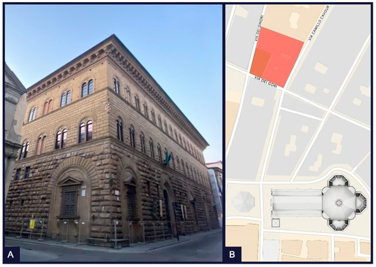 (A) Representation and (B) location of Palazzo Medici Riccardi.