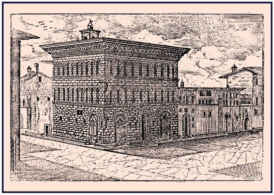 - Preyer, B. L’architettura del palazzo mediceo. In Il Palazzo Medici Riccardi di Firenze; Cherubini, G., Fanelli, G., Eds.; Giunti: Firenze, Italy, 1990; pp. 58–75. [Google Scholar]