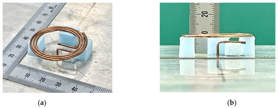 Finally, we summarize the differences between the curl and spiral antennas. The differences are summarized in Table 1. It is emphasized that the curl has an antenna part vertical to the ground plane (the part o-o′ in Figure 5). In contrast, the spiral antenna does not have a vertical part.