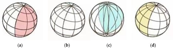 As shown in Section 4.1, there are 468 different classes in the regular strategy. Too many classes can bring interference to learning and testing. Thus, this part proposes the segmentation strategy for predigestion. For the azimuth, the entire space is considered, which is a major contributor to too many classes. The azimuth space can be processed with the segmentation strategy. The entire space is equally divided into Q sub-spaces. Thus, the task is finished in parallel with Q independent networks. This strategy can decompose the excessive number of classes in the task into Q parts so that the number of the total classes in each part is reduced, thereby reducing the interference induced by classes. Figure 4 shows the example of the space division when , and the experiments in this paper are conducted in the case of . The color-rendered part is the corresponding sub-space, and the white area is the irrelevant space compared to the coloring space.