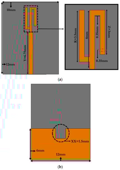 - Mishra, S.K.; Gupta, R.K.; Vaidya, A.; Mukherjee, J. A compact dual-band fork-shaped monopole antenna for Bluetooth and UWB applications. IEEE Antennas Wirel. Propag. Lett. 2011, 10, 627–630. [Google Scholar] [CrossRef]