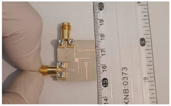 The proposed MIMO antenna was fabricated using a Leiterplatten-Kopierfrasen, LPFK, machine, and was tested in anechoic chamber. Due to symmetricity of the design, only one side of the proposed antenna is tested. Figure 6 shows the proposed antenna structure’s copper layer with 2.4 mm end launch connectors. The antenna has been set with a scale to show the physical length of the proposed prototype.