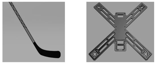 The mechanics of a composite hockey stick’s breakage is explained in an experiment performed by SmarterEveryDay []. Slap shots, when the player bends the stick against the surface of the ice and then transfers the energy onto the puck, are the common cause of hockey stick fracture. CF composite samples were subjected to a three-point bend test, which replicates the mechanism that leads to fracture. In fact, the mid-point of the test replicates the hand of the player during a slap shot, when tension builds at shaft location. Fractures in hockey sticks often occur around where the player holds the stick (Figure 4) [].