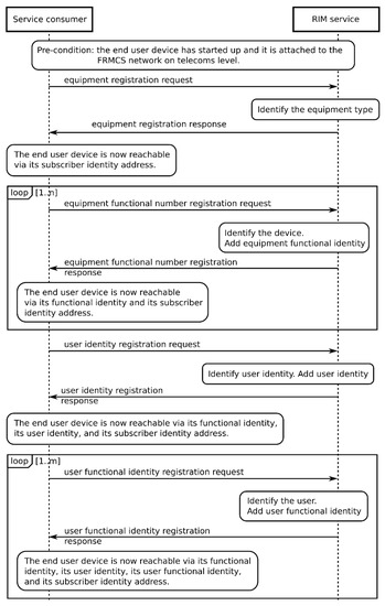 The rest of the paper is organized as follows: The next section describes basic terms that are used in the use case definitions and focuses on the required functionality of role management and presence as defined in [10]. Section 3 presents a service-oriented approach for the initial registration of a device, user, and functional identities. A new FRMCS service is proposed that enables applications deployed in FRMCS equipment to login/logout of the FRMCS system and to register/deregister their functional identities. The service also enables users to login/logout of the FRMCS system and to register/deregister one or more user functional identities. Section 4 presents aspects related to service implementation. Section 5 studies issues about the equipment and user mobility between different FRMCS systems and the necessity to relocate their registered identities. The section also presents a new FRMCS service that enables registered identities to be transferred between FRMCS systems as trains move across different FRMCS serving areas. The applicability of the services when implementing FRMCS security and safety functions is discussed in Section 6. The Conclusion summarizes the contributions and highlights the benefits and limitations of the proposed approach while outlining directions for future work.