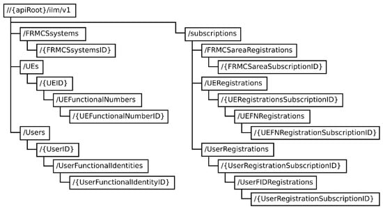 The ueID resource refers to individually registered UE information and it is represented by ueInfo, which is a structure comprising the UE address, UE type, UE presence status, and a self-referring URL. The UE presence status shows the UE context status in terms of activity (available, busy, railway emergency communication, etc.), placeType (train, station, office, etc.), placeProperties (the place where the user is currently), timeOffset (the number of minutes from the Coordinated Universal Time—UTC), location (direction, destination, track section), activeApplications (describes the active applications), etc. The presence information is provided by the FRMCS system. An HTTP GET method retrieves information about the individual UE, and an HTTP DELETE method deletes individual UE registration.