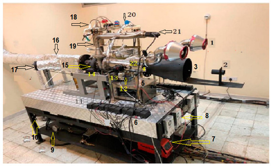 The assembly of all fabricated system units complied with all safety rules and operational standards as stipulated [47,48]. The entire assembled GTE with the proposed external integrated electrically powered Plasmatron torch and ultrasonic atomizer for hydrogen gas reformation is displayed in Figure 7. The plasma technology integration approach reduces toxic GHG emissions and improves system performance impact on the fuel consumption rate, thereby reducing the system operating cost across several fuel types. The details of all parts are listed in Table 2.