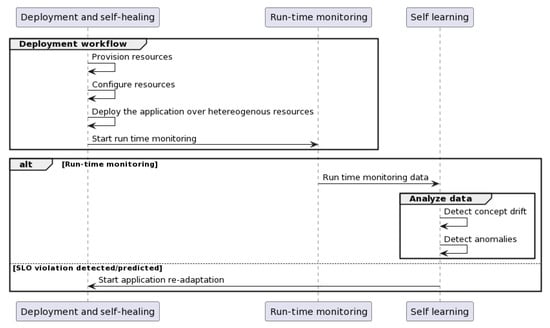 Sequence diagram of the proposed Cloud Self-healing workflow through the reference framework.