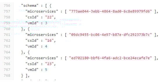 Figure 9. Snippet of the application description JSON file, where the best combination of infrastructural elements are suggested in through the “schema” element.As explained, the microservices-based e-health application’s main characteristics were maintained in the “Application Description” JSON file which was used by the different components to gather and exchange relevant information. Consequently, the infrastructural requirements and application components’ description (Figure 3) are collected in the application description file as presented in Figure 7.The operation phase is also enriched with a set of new tool-supported activities specially for the self-healing; - Automatic deployment of the application occurs through the “Infrastructure generation” and the “Application Deployment” sub-modules (Deployment and Self-Healing in Figure 3). They create the needed infrastructural resources and deploy the application through Terraform and Ansible templates. Besides the deployment of the application, they also deploy a set of monitoring agents (Telegraf-based [80]) in the infrastructure to gather the corresponding runtime metrics aligned with the selected NFRs;