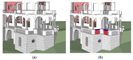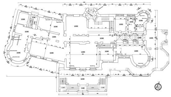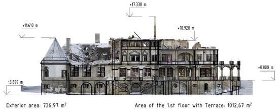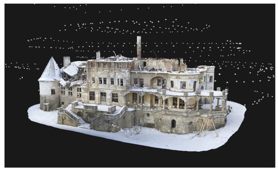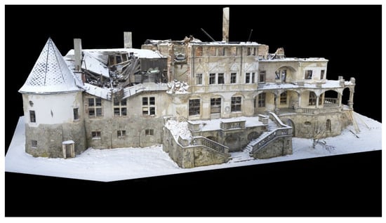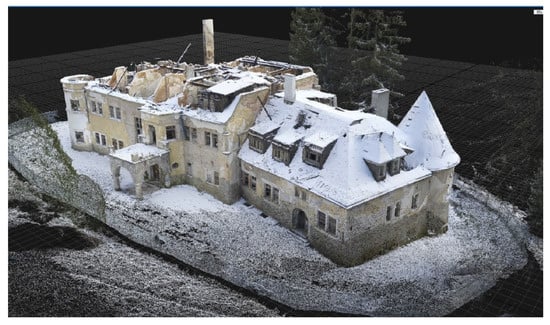 A case study of the Museum of King Jan III’s Palace at Wilanów [] describes the creation of a 3D model using terrestrial laser scanning (TLS) and photogrammetry. Since the building was in a good, fully functional state, it was not suitable for reconstruction activities (undertaken when no printed documentation is available and thus must be produced from an incomplete building).