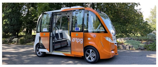 - Ainsalu, J.; Arffman, V.; Bellone, M.; Ellner, M.; Haapamäki, T.; Haavisto, N.; Josefson, E.; Ismailogullari, A.; Lee, B.; Madland, O.; et al. State of the art of automated buses. Sustainability 2018, 10, 3118. [Google Scholar] [CrossRef]