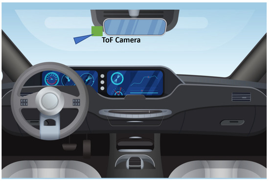 Experimental configuration for HR/RR measurements in a vehicle with a ToF camera.