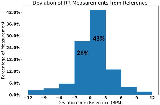 Percentage of ToF-based RR measurements versus deviation from the reference respiration belt.