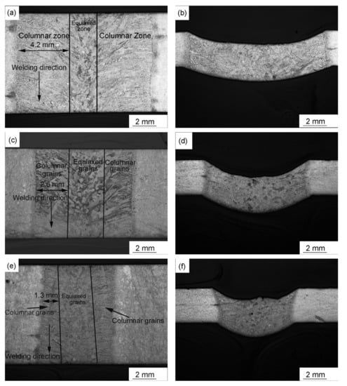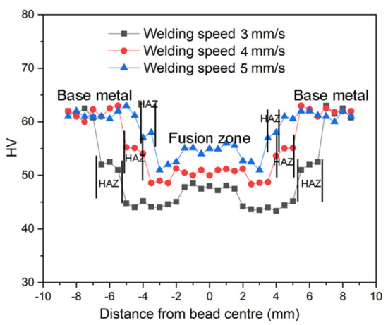 - The microstructural examination of the fusion zone reveals that the average grain size of the equiaxed zone decreases with increasing welding speed;