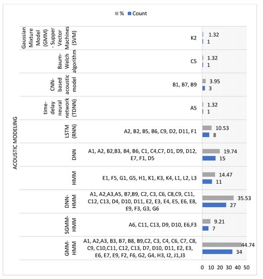 - Giuliani, D.; BabaAli, B. Large vocabulary children’s speech recognition with DNN-HMM and SGMM acoustic modeling. In Proceedings of the Annual Conference of the International Speech Communication Association, INTERSPEECH, Dresden, Germany, 6–10 September 2015; Volume 2015, pp. 1635–1639. [Google Scholar]