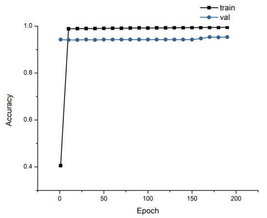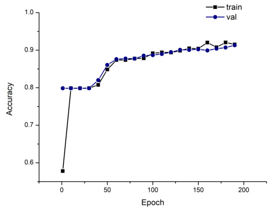 Comparing Cert GCN with Text GCN, the difference is that Cert GCN constructs graph certificate datasets using the attributes of the certificates and the names of the certificate documents as nodes, whereas Text GCN processes certificate datasets by constructing the corpus using the words in the certificate file and the certificate documents as nodes. They also use different activation functions and have different learning rates. Figure 4 and Figure 5 depict the accuracy of the training and validation sets of Cert GCN and Text GCN [10], respectively, applied to malicious and benign certificates.