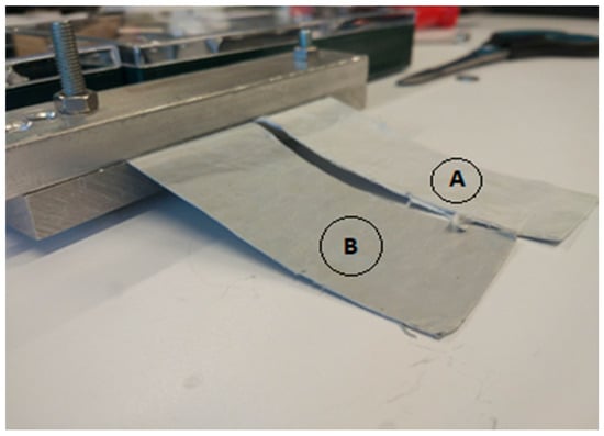 Image of 25% biochar fibers (A) and 10% biochar fibers (B) clamped on one side before stabilization.