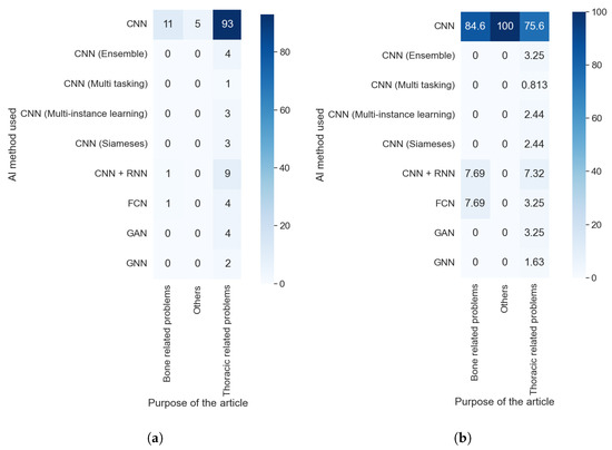 - RQ1: What is the purpose of the article?With this question, we wanted to identify the aim of the study. In most cases, we identified which pathology the authors wanted to detect in the study.