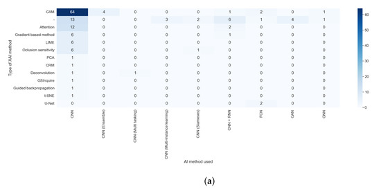 - RQ2: What AI methods are used?We identified the type of AI algorithm used as a backbone for the XAI techniques.