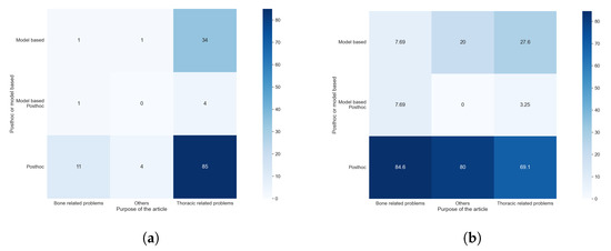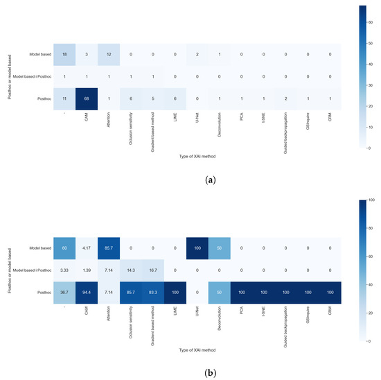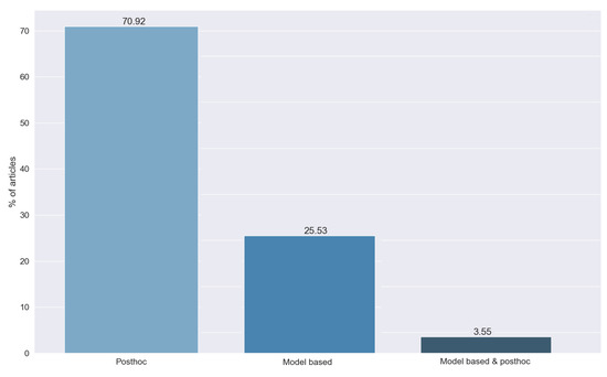 - RQ6: Is a post hoc method or a model-based method used?Following the proposals of [17], we classified the studies depending on the nature of the explainability output.