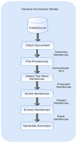The general steps of automatic text summarization, as shown in Figure 1, are described below: