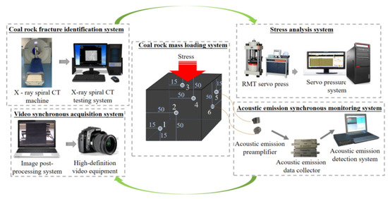 Recently, several novel technologies have been employed to investigate the micro-structure and fracture characteristics of coal rock. Computed tomography (CT) scanning is a non-destructive testing method [5], which is suitable for rapidly acquiring the internal structural characteristics of rocks. CT has scanning, imaging, and visualization functions and does not deform samples [6,7]. Zhou [8] used X-ray CT imaging and digital imaging techniques to study the anisotropic damages and spatial fracture evolution of sandstone under uniaxial compression. Likewise, Liu [9] used CT scanning to analyze the fracture propagation of sandstone subjected to loading. Deng [10] performed CT scanning on failed rock samples to investigate the fracture evolution law. However, because of the resolution constraint of CT devices, CT images can only be used for describing the evolution law of macro-fractures. Therefore, the effect of micro-fractures on coal mass damages can be investigated using the average CT number method [11,12,13].
