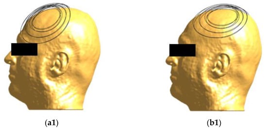 - Wagner, T.A.; Zahn, M.; Grodzinsky, A.J.; Pascual-Leone, A. Three-dimensional head model Simulation of transcranial magnetic stimulation. IEEE Trans. Biomed. Eng. 2004, 51, 1586–1598. [Google Scholar] [CrossRef]