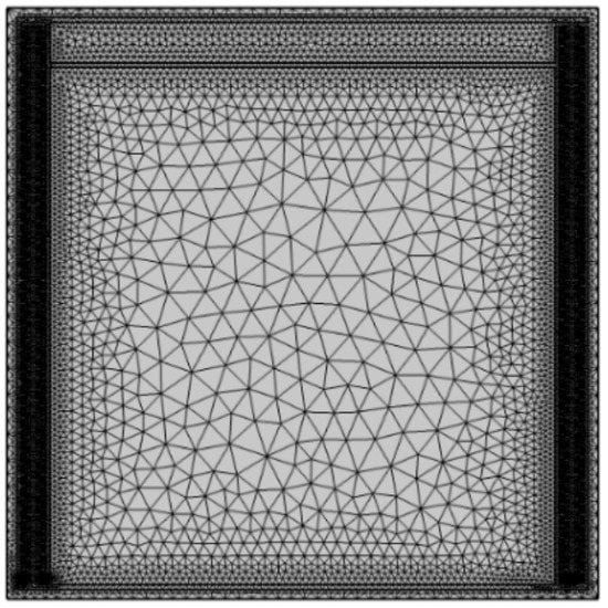 According to the material parameters of air, we can calculate that the acoustic impedance of air is 428 N·s/m3, while for the steel which makes up the structure of Helmholtz resonator, its acoustic impedance is 4.05 × 107 N·s/m3. By comparison, the acoustic impedance of steel is much larger than air, which indicates that when the sound waves propagate from air into the structure, only a small part of the sound energy will enter the structure through the interface between the two, and most of the sound energy will be reflected back into the air. Therefore, the boundary between the two is set as a rigid boundary and the structure can be regarded as a rigid body in the simulation calculation, and the effect of interface phenomena between air and the structure was ignored, thus simplifying the simulation calculation model.