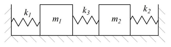 The equivalent model is a two-degree-of-freedom system. According to the vibration theory of a multi-degree-of-freedom system, the upper limit of the first and second band gaps fup1 and fup2 can be expressed as: