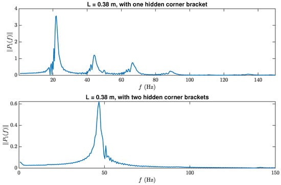 In our previous study, we found the experimental natural frequency of the aluminum profile beam to test the theoretical results (see Figure 2). The beam was attached to a fixed base using hidden aluminum profile corner brackets.