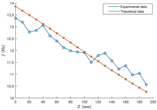 where E is elastic modulus, I is the second moment of the beam’s cross-section area, is beam material density, A is the cross-sectional area, and a is a wavenumber of Euler–Bernoulli mode.