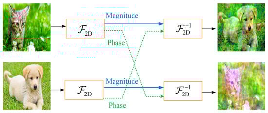 The phase component carries much more information than the amplitude component, such as the shape, depth, polarization, and so on. Therefore, phase plays a role in many applications, such as system encryption [9] or electro-optic conversion of microwave signals [10]. For example, as illustrated in Figure 1, exchange the Fourier phase of the two images and keep the amplitude unchanged, then the major contexts of both image exchange, which means that the Fourier phase contains the most amount of information about the image.