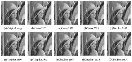- Zhang, C.; Yang, H.-R.; Wei, S. Compressed Imaging Using Toeplitz-circulant- block Phase Mask Matrices. Acta Photonica Sin. 2011, 40, 1322–1327. (In Chinese) [Google Scholar] [CrossRef]