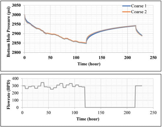 Finally, as shown in Figure 9, coarse models one and two could accurately represent the reference case with a considerably coarsened grid size with only 1.5% of the simulation time. After performing the model setup, the prediction could be performed in a single well as well as in a full field case.