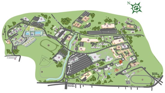 The methodology described in this document, which is shown in Section 3, was developed at the University of Puerto Rico at Mayagüez (UPRM). The obtained results are shown in this section. A sketch of the University is shown in the Figure 5. The numbers in the figure corresponding to building identification.