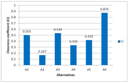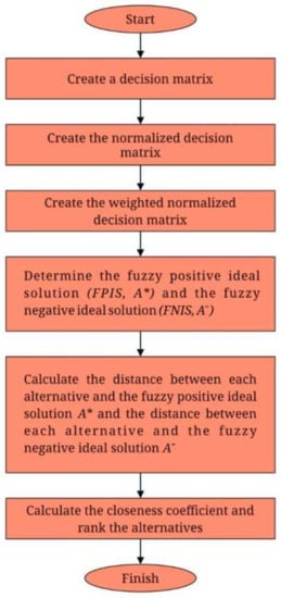 Technique for Order Performance by Similarity to Ideal Solution (TOPSIS) is one of many popular MCDM methods. It is a practicable and helpful method for rating and choosing a figure of viable options by calculating Euclidean distances. The TOPSIS method was created by Hwang and Yoon [45]. It is centered on the notion that the optimal result must be the closest to the positive ideal solution (PIS), which is the solution that maximizes the advantage criteria while minimizing the cost criteria, as well as the furthest away from the negative ideal solution (NIS), which is the solution that maximizes the cost criteria while minimizing the advantage criteria.