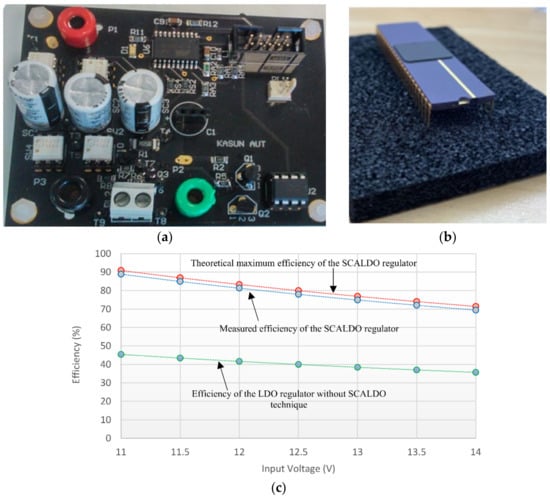 The efficiency of the linear regulator () approximately can be calculated by Equation (4) [] as follows: