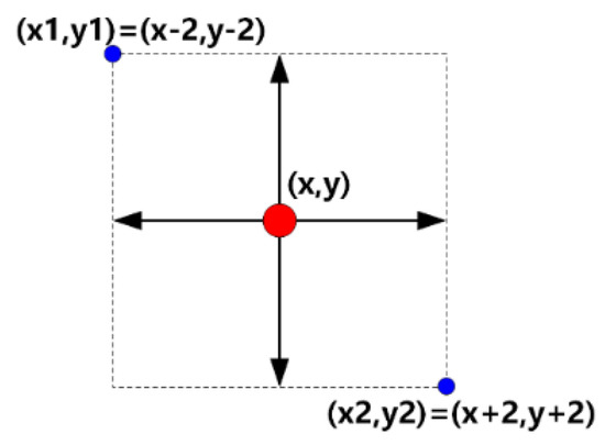 Owing to the atmospheric distortion and the long exposure time, the received photons from the target object are smeared over a few pixels. On the other hand, the brightness of space targets is unstable due to the movement. Hence, we take the advantage of intensity correlations of neighboring pixels and transform the label information of point coordinates. Then we generate the according bounding box labels as depicted in Figure 5. The conversion process is regarding each target point as the central position of the according bounding box. The distances between the center point and the top, bottom, left and right edges are all set to 2 to generate the ground truth of bounding box. Then, coordinates of the upper left corner and coordinate values of the lower right corner are calculated according to the offset value. Thus, we obtain new annotation files ready for training the single-frame object detector.