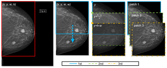 Figure 2 illustrates how square patches are obtained from the extracted breast area (for simplicity, only the case of
