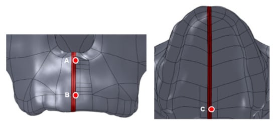 Figure 1 is the solid model of the skull, which included the cortical shell, cancellous bone, and midpalatal suture. The virtual skull model excluded other sutures, such as pterygomaxillary, zygomaticomaxillary, and zygomaticotemporal sutures. In this stage, teeth displacement was disregarded when analyzing effects of MARME on midpalatal suture opening. Hence, maxillary dentition, which was assumed to have the same material properties as cortical bone, was not isolated when tooth models were reconstructed from CBCT images. The skull model had a cortical bone thickness and a midpalatal suture width of 2 mm and 1.5 mm, respectively.