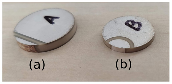This approach is applied when computing of two types of piezoelectric transducers, labeled (a) and (b), shown in Figure 1. The transducers differ in the shape of the electrode wrap-around. In case of (a), the overlay is in the shape of a circular segment, in case of (b), it is in the shape of intersecting circles.