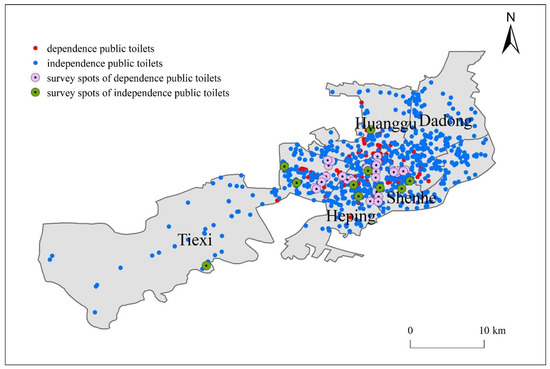 Public health infrastructure is an important part of the urban infrastructure system, as well as an important prerequisite and necessity for social livelihood and economic development [1]. Public toilets have become the basis for the evaluation of urban public health services because of their proximity to residents’ lives and rapid renewal changes. It also reflects the sanitation and health level of society to a certain extent. Urban public toilet facilities, the collective term of toilet sanitation facilities for urban residents and floating populations, are an essential part of urban environmental sanitation facilities and critical elements of urban tourism facilities and cultural construction. Public toilet facilities play a key and irreplaceable role in maintaining the urban environment and public health [2,3,4,5,6], especially in places where low-income groups live and are densely inhabited districts [7,8]. Historically, one of the leading causes of the Black Death ravaged the European continent was the lack of sanitation facilities such as public toilets, which increased the demand for public toilet facilities [9]. Empirical studies based in India have shown that the increasing usage of toilets has a significant effect on reducing infectious diseases, with a 10% increase in public health spending found to reduce the average mortality rate by 2% [10]. The United Nations Sustainable Development Goal clearly states that “By 2030, achieve access to adequate and equitable sanitation and hygiene for all and end open defecation, paying particular attention to the needs of women and girls and those in vulnerable situations” [11].